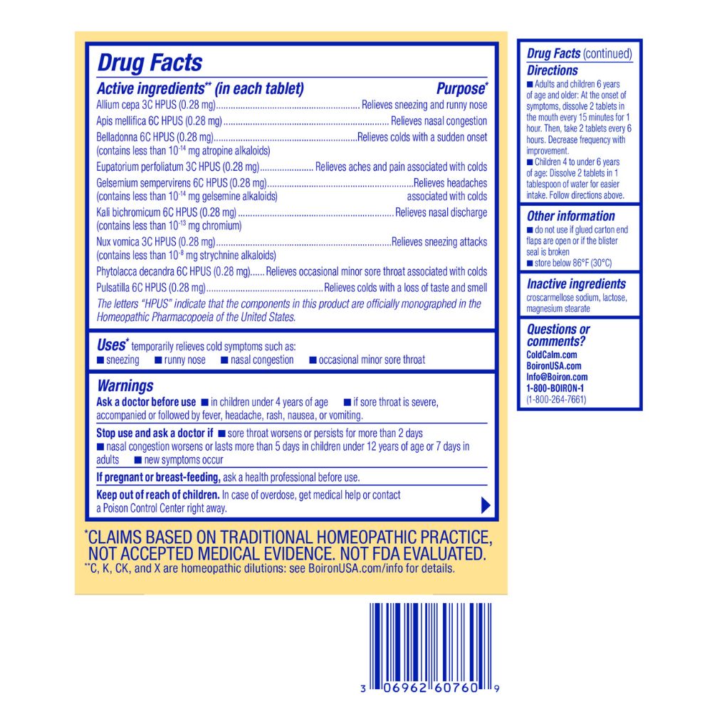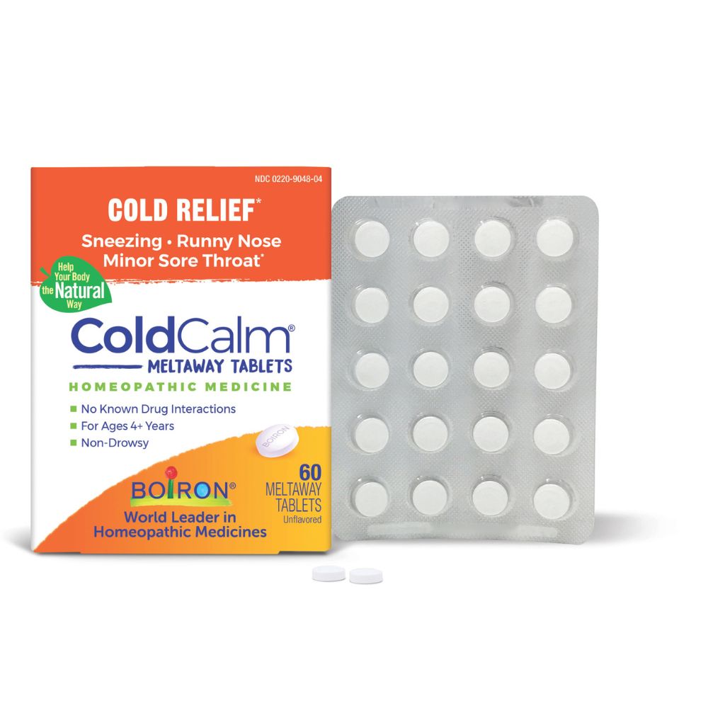 Discover a better way to calm cold symptoms with ColdCalm Tablets. Unlike conventional medications that merely mask symptoms, this homeopathic cold medicine targets specific symptoms at the onset, established and resolution stages of the common cold. The non-drowsy, meltaway tablets are easy to take at the first sign to relieve sneezing, runny nose, nasal congestion, and minor sore throat pain.*