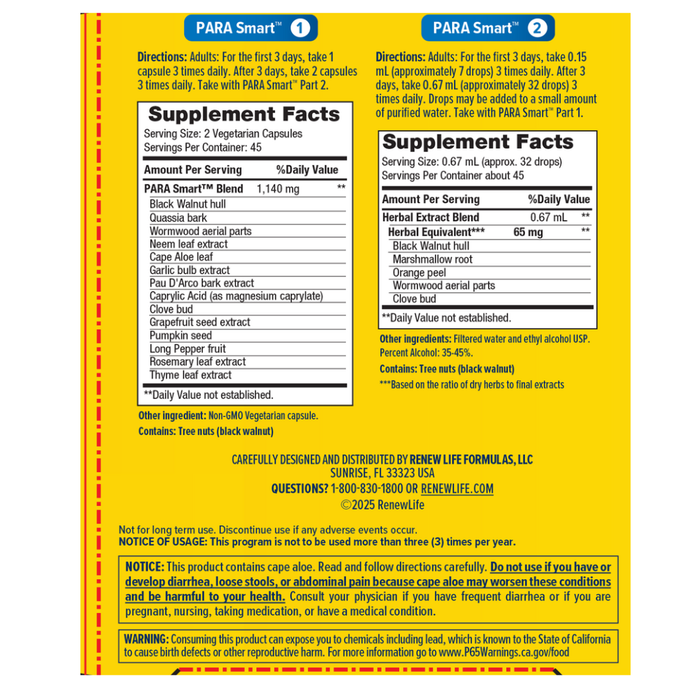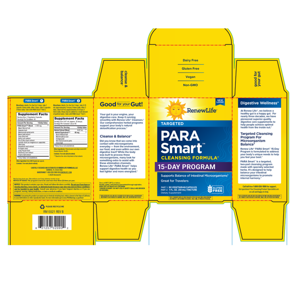 Renew Life® ParaSmart™ is a targeted 2-part cleansing program. It’s made with specially selected herbs and natural ingredients to promote the balance of intestinal microorganisms.* Helping you feel lighter, brighter and more energized. • Promotes balance of intestinal microorganisms* • Great for travelers